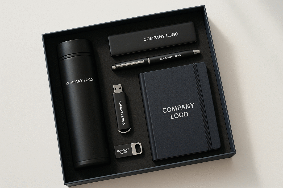 - Lüks VIP setler: Deri ajanda, özel tasarım kutu, logolu metal kalem.