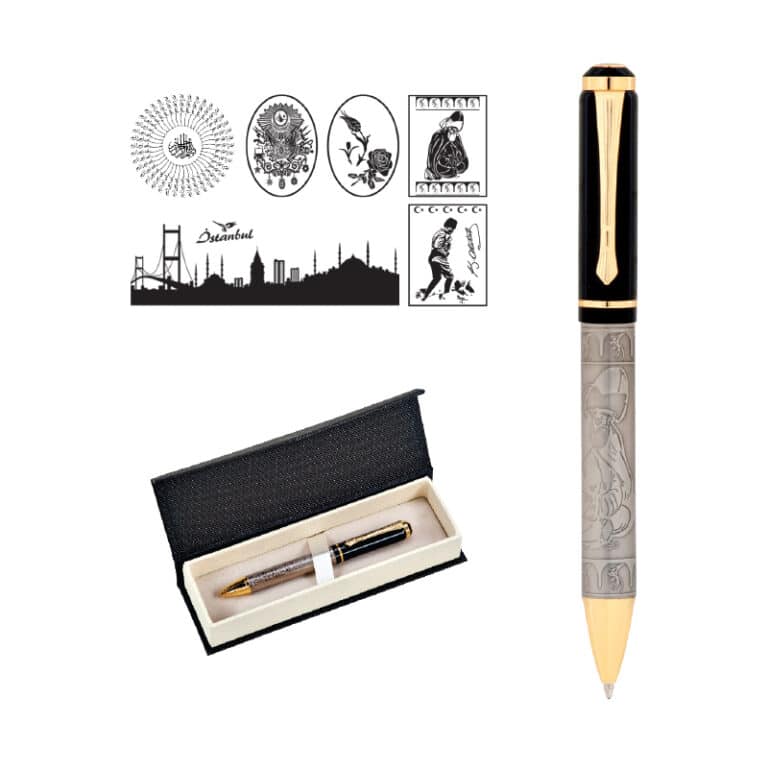 Kabartma Figürlü Metal Tükenmez Kalem Seti